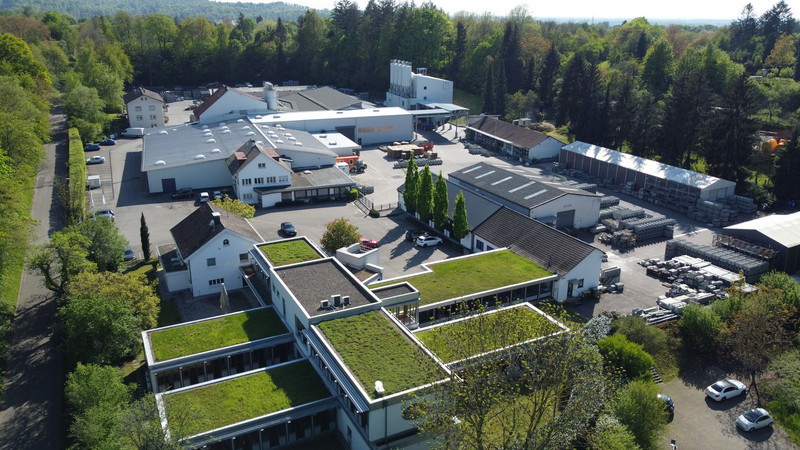 Weit fortgeschritten ist der Bau der neuen Mischanlage und der dazugehörigen Infrastruktur, mit 6,5 Millionen Euro die größte Investition in der 96-jährigen Firmengeschichte. „Dadurch ergeben sich im Bereich Betontechnologie ganz neue Möglichkeiten mit Blick auf Differenzierung und Dosierung im Herstellungsverfahren“, so Merkel. Die Mischanlage ermöglicht die Arbeit mit Recyclingmaterialien und neuen, CO2-bindenden Zusatzstoffen. Auch die Bandbreite an Korngrößen wächst. Weitere Infrastrukturprojekte sind die Verkehrswege am Standort sowie Ladestationen für E-Fahrzeuge. Merkel: „Schon allein optisch bilden die neuen Infrastrukturmaßnahmen einen deutlichen, aber gewollten Bruch zu anderen Bestandsgebäuden auf unserem Gelände: Im Transformationsprozess soll unsere Unternehmensgeschichte eingebunden sein.“